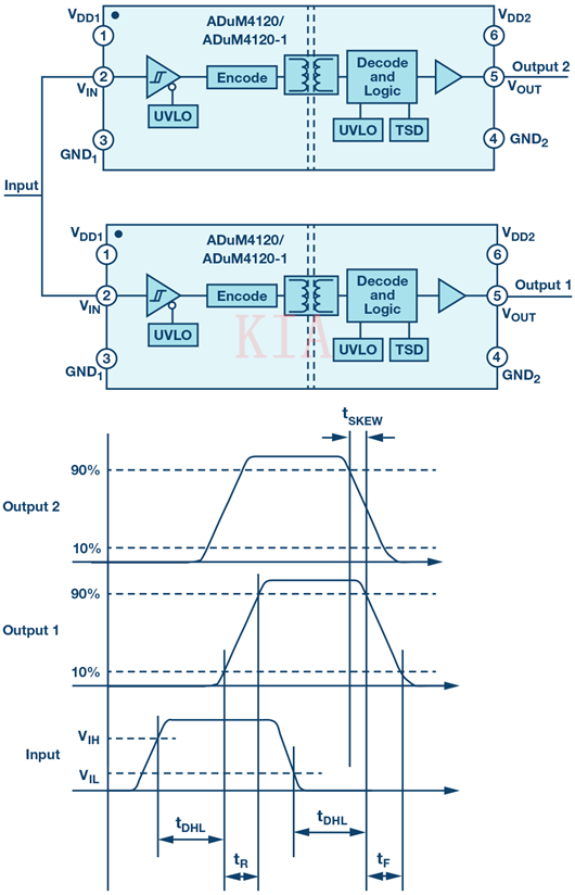圖5.ADuM4120柵極驅(qū)動(dòng)器和時(shí)序波形