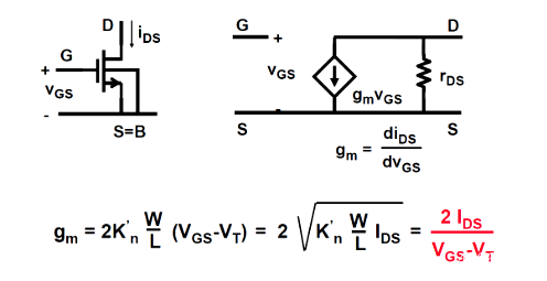 gm描述了柵源電壓對輸出電流的控制作用,因為實際應用中往往固定過驅動電壓VGS?VTH,所以第三個等式gm=2IDS/VGS?VT使用最多