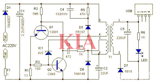 5v充電器電路圖,開關電源電路-KIA MOS管