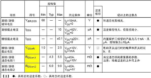 VGS(th)是指加的柵源電壓能使漏極開始有電流,或關斷MOSFET時電流消失時的電壓,測試的條件(漏極電流,漏源電壓,結溫)也是有規格的。正常情況下,所有的MOS柵極器件的閾值電壓都會有所不同。因此,VGS(th)的變化范圍是規定好的。VGS(th)是負溫度系數,當溫度上升時,MOSFET將會在比較低的柵源電壓下開啟。